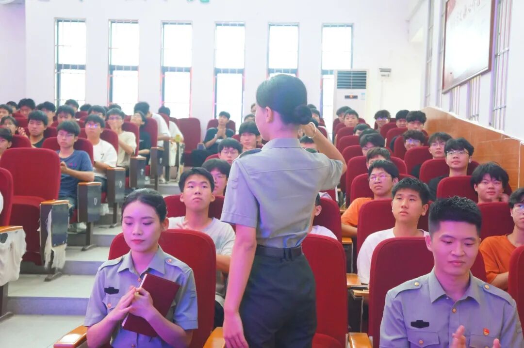 在征兵政策宣讲环节,陶老师强调了国防事业的重要性,详细介绍了今年的征兵政策、报名流程、选拔标准以及退役后的就业安置等方面的信息。帮助学生们更好地理解了征兵政策的重要性和实际意义。积极解答在场学生提出的应征入伍相关问题。鼓励学生们要珍惜这次难得的机会,深入了解征兵政策,积极报名参军。