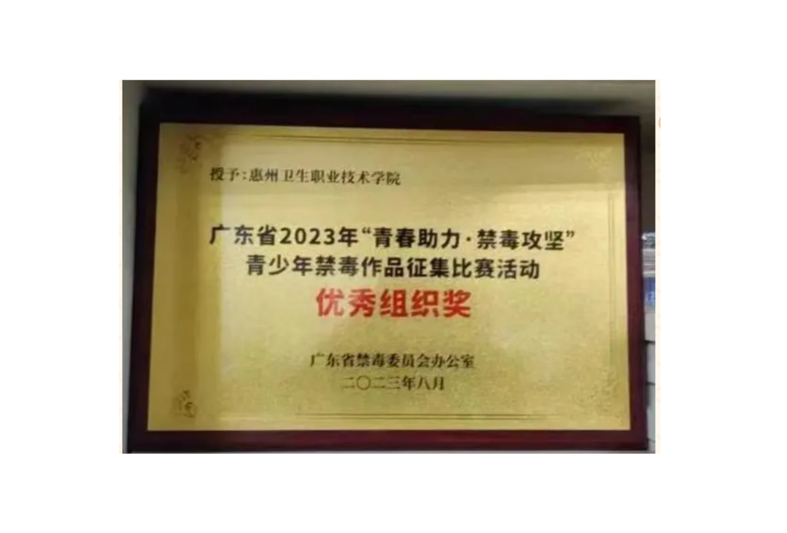 近日,由省禁毒办、团省委、省教育厅、省人力资源社会保障厅、省总工会、省妇联、省学生联合会、少先队广东省工作委员会8家省直单位联合启动的广东省2023年“青春助力·禁毒攻坚”青少年禁毒作品征集比赛活动圆满结束。我校高度重视,积极响应,广泛宣传发动,认真落实组织开展禁毒作品征集,优中选优,我校多项作品在比赛中脱颖而出,学校获得“优秀组织奖”。