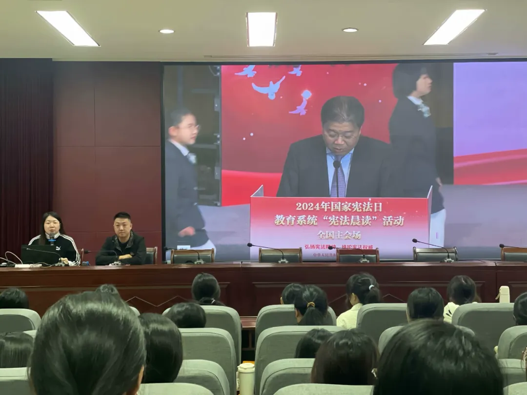 12月4日上午9点,我校300余名师生在图书馆多功能报告厅观看了“国家宪法日宪法晨读活动”直播。